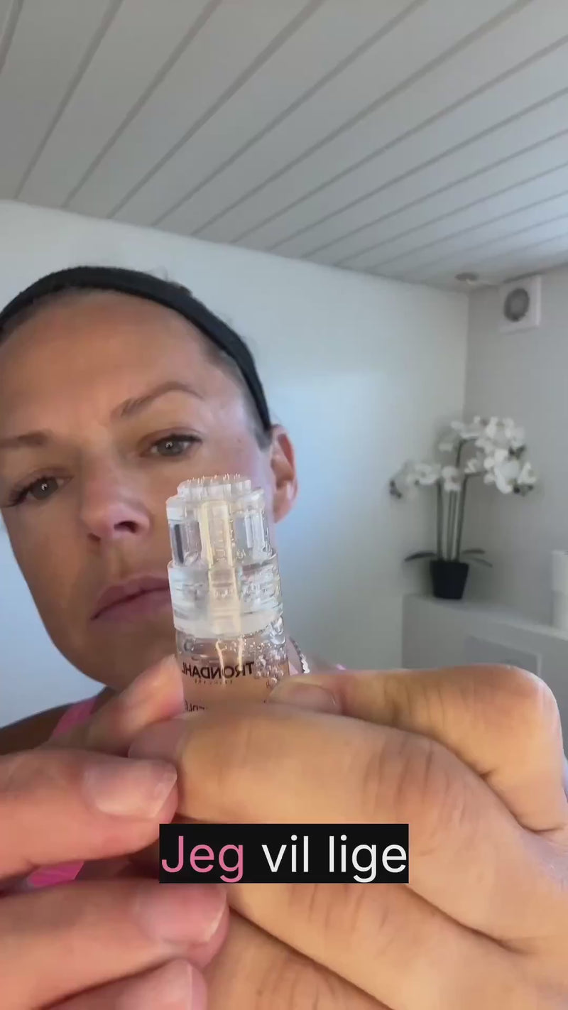 Når du har fyldt kammeret med serummet, skal du vende det på hovedet i 1 minut, så det har tid til at flyde ned i nålene.